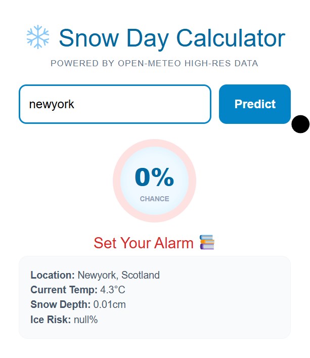 Predicting a school closing isn’t just about looking at a thermometer anymore. It’s a mix of meteorology, local logistics, and a bit of “wait and see.” Our Snow Day Predictor takes the guesswork out of the equation by analyzing real-time weather data to give you an accurate probability score for your specific area.